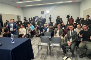 照片顯示,今天的奇才媒體室已經(jīng)人滿了。