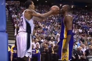 “那是三月份臨近季后賽的一場(chǎng)比賽,火藥味十足。科比這家伙,他在技術(shù)上是天花板,但他也會(huì)在場(chǎng)上搞心態(tài),比如拉扯你、肘擊你,搞些小動(dòng)作。有一次他擊中了我的胸口,我當(dāng)時(shí)差點(diǎn)喘不過(guò)氣,我真想把他的頭擰下來(lái),但裁判沒(méi)吹。于是我開(kāi)始用兇狠的犯規(guī)回?fù)?,裁判卻開(kāi)始吹我了。”