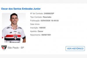 體育資訊04月04日訊 巴西足協(xié)官網(wǎng)的球員注冊系統(tǒng)中顯示,34歲奧斯卡與圣保羅已于當(dāng)?shù)貢r間4月2日解除合同!