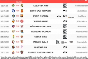 體育資訊4月4日訊 西甲官方公布了第32輪比賽的開球時(shí)間,4月25日3點(diǎn)貝蒂斯vs皇馬,4月25日22點(diǎn)15分赫塔費(fèi)vs巴薩。