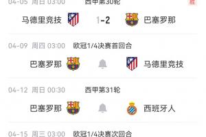 體育資訊04月05日訊 本輪西甲,巴薩2-1逆轉(zhuǎn)馬競。
