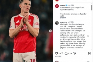 阿森納官方社媒曬出球員們謝場(chǎng)的照片,配文:“你們的傾力支持沒(méi)有換來(lái)應(yīng)得的結(jié)果,周二晚上(客戰(zhàn)葡體),我們會(huì)彌補(bǔ)這一切。”