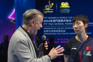 體育資訊04月05日訊 國際乒聯(lián)單打世界杯女單半決賽,王曼昱4-2擊敗申裕斌,與孫穎莎會(huì)師決賽。賽后,王曼昱接受記者采訪。