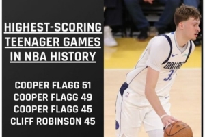 據(jù)美記Nate Duncan統(tǒng)計,青少年球員一共打了10818場比賽,得分前三都屬于弗拉格,分別是51分、49分和45分。