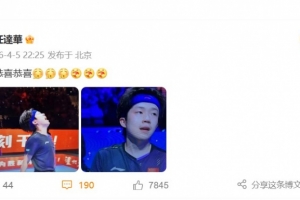 著名中國香港影星任達華在個人微博上曬出自己觀看王楚欽比賽的照片,并配文寫道:恭喜恭喜。之后,王楚欽點贊了這一社媒。