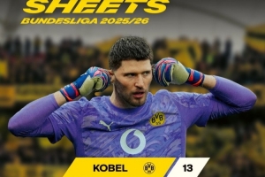 體育資訊4月6日訊 多特門將科貝爾本賽季聯(lián)賽完成13場(chǎng)零封,德甲門將零封場(chǎng)次最多。