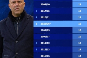 根據德國轉會市場的統(tǒng)計數據,新世紀以來,利物浦本賽季的輸球場次已經位居球隊單賽季輸球場次榜第5位。