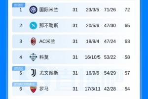 體育資訊4月7日訊 意甲第31輪,米蘭0-1客負那不勒斯遭排名反超、尤文2-0輕取熱那亞距歐冠區(qū)僅1分。最新積分榜↓