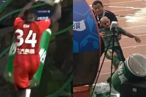 而在2023年中超有過幾乎一樣的案例,2023年6月29日,中超第13輪,上海海港客場(chǎng)2-1擊敗北京國(guó)安,比賽第57分鐘,上海海港外援伊薩·卡隆在被替換下場(chǎng)后,用腳踢壞替補(bǔ)席旁的冰桶。之后中國(guó)足協(xié)開出罰單,卡隆被停賽1場(chǎng)、罰款人民幣1萬元。