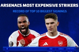 體育資訊4月7日訊 德國轉(zhuǎn)會市場根據(jù)阿森納引進(jìn)前鋒的轉(zhuǎn)會費,以及前鋒的進(jìn)球數(shù)量,列出了阿森納隊史平均每球花費轉(zhuǎn)會費最多前鋒排名。