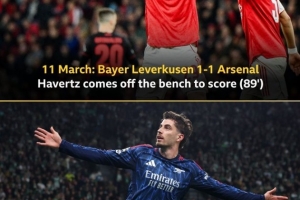 本場比賽哈弗茨替補登場在第91分鐘打進絕殺,而在上一輪歐冠阿森納客場1-1戰(zhàn)平勒沃庫森的比賽中,也是哈弗茨替補登場在第89分鐘打進絕平進球。