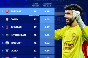 德轉(zhuǎn)盤點(diǎn)了本賽季五大聯(lián)賽球隊(duì)在各項(xiàng)賽事場(chǎng)均丟球最少榜單,阿森納與科莫并列最少,具體如下(總丟球+場(chǎng)均丟球):
