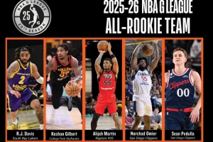 體育資訊4月8日訊 今天,NBA發(fā)展聯(lián)盟官方公布了25-26賽季最佳新秀陣容。