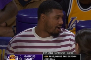 湖人VS雷霆,轉(zhuǎn)播方曬斯瑪特數(shù)據(jù):本賽季他的總凈勝分是+238,領(lǐng)跑全隊。