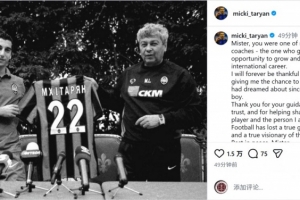 姆希塔良效力頓涅茨克礦工期間在盧切斯庫麾下踢球,他在社交媒體上曬出與盧切斯庫的昔日合照,配文:“教練,您是我職業(yè)生涯早期的恩師之一,正是您給了我成長的機會,并開啟了我的國家隊生涯。我永遠感激您,讓我得以實現(xiàn)兒時以來的夢想。