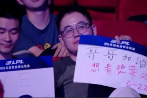 體育資訊4月8日訊?在今天TES對戰(zhàn)WE的比賽里,導(dǎo)播給到觀眾席應(yīng)援鏡頭,出現(xiàn)了有觀眾手舉0-22的應(yīng)援牌。