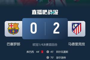體育資訊04月09日訊 歐冠1/4決賽首回合結(jié)束,巴薩0-2馬競,皇馬則1-2拜仁。