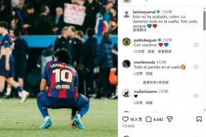巴薩邊鋒亞馬爾社媒曬出賽后低落的照片,并寫道:“這一切還沒有結(jié)束,巴薩球迷們。我們將在次回合比賽中傾盡所有。永遠(yuǎn)團(tuán)結(jié)一心?!?/p>