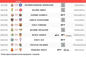 體育資訊1月10日訊 西甲官方公布了第22輪比賽的開球時(shí)間,2月1日4點(diǎn)埃爾切vs巴薩,2月1日21點(diǎn)皇馬vs巴列卡諾。