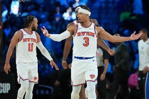 戰(zhàn)績(jī)上,尼克斯落后凱爾特人2個(gè)勝場(chǎng),排在東部第三,還存有理論上的奪得東部第二的希望;