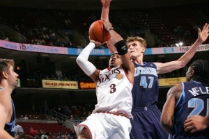 艾弗森職業(yè)生涯共出戰(zhàn)914場(chǎng)比賽,場(chǎng)均出戰(zhàn)高達(dá)41.1分鐘,能貢獻(xiàn)26.7分、3.7個(gè)籃板、6.2次助攻和2.2次搶斷。
