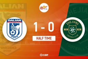 半場戰(zhàn)罷,大連英博暫1-0浙江。