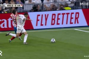 體育資訊04月11日訊 西甲第31輪,皇馬對(duì)陣赫羅納。35分鐘,姆巴佩突入禁區(qū),亞歷杭德羅·弗朗西斯倒地,裁判吹罰姆巴佩犯規(guī)。姆巴佩不解,找裁判抗議染黃。