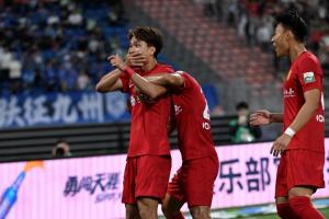 進(jìn)球后的陳純新做出了用手捂嘴的慶祝動(dòng)作。