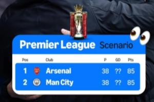 轉播方亞馬遜列出一種潛在的英超爭冠形勢:若曼城接下來在英超全勝(包括主場對槍手的直接對話),而阿森納贏得除直接對話的另外五輪比賽,雙方在全部比賽結束后的比分均為85分,需要比較凈勝球才能決定最終冠軍歸屬。