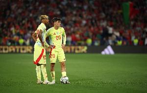在巴薩的首發(fā)陣容中,除了阿勞霍外,其他10名球員均為西班牙人,而且?guī)缀醵际俏靼嘌绹_,他們分別是霍安·加西亞、庫巴西、赫拉德·馬丁、巴爾德、埃里克·加西亞、佩德里、加維、費爾明、亞馬爾以及費蘭·托雷斯。