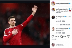 羅伯遜將在本賽季結(jié)束后離開利物浦,他在社交媒體上曬出謝場(chǎng)的照片,配文:“謝謝你,安菲爾德?!?/p>