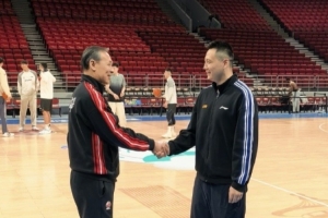 上午的踩場訓(xùn)練中,場邊發(fā)生有趣的一幕,北京男籃主帥許利民和上海男籃主帥盧偉寒暄,他說道:“你們現(xiàn)在太猛了,拿第一了啊。”