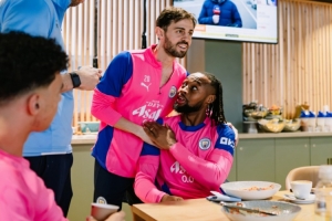 體育資訊1月10日訊 曼城官方曬圖,福登、B席等隊(duì)友歡迎新援塞梅尼奧。