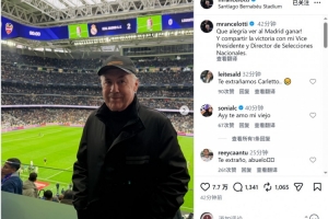 曾兩度執(zhí)教皇馬的現(xiàn)任巴西隊(duì)主帥安切洛蒂重返伯納烏,現(xiàn)場觀看了這場比賽,他在社交媒體上曬出照片,配文:“看到皇馬獲勝真是太開心了!而且還能與我的(巴西足協(xié))副主席和國家隊(duì)總監(jiān)共同分享勝利的喜悅。”