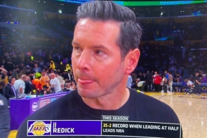 體育資訊4月13日訊 NBA常規(guī)賽,湖人半場62-45領(lǐng)先爵士。主帥雷迪克在中場時接受了采訪。
