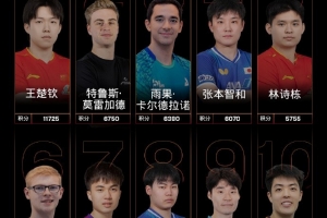 男單世界前10:1王楚欽、2莫雷加德、3雨果、4張本智和、5林詩(shī)棟、6-小勒布倫、7-林昀儒、8-松島輝空、9張禹珍、10邱黨。