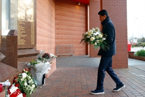 巴黎俱樂部主席納賽爾、主帥恩里克攜球員前往安菲爾德球場(chǎng),悼念希爾斯堡慘案遇難者,并向若塔及其兄弟安德烈·席爾瓦的紀(jì)念碑獻(xiàn)花。