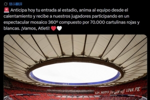 馬競官方寫道:“今天請?zhí)崆斑M(jìn)入球場!從熱身階段就開始為球隊吶喊助威,并參與由70000張紅白卡片組成的壯觀360度環(huán)繞馬賽克拼圖,以此迎接我們的球員入場?!?/p>