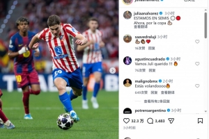 阿爾瓦雷斯社媒曬出比賽照片,慶祝球隊(duì)晉級(jí),配文:“我們晉級(jí)歐冠半決賽,現(xiàn)在要沖擊國王杯冠軍!”