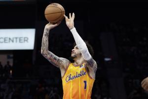本場比賽,黃蜂當家球星拉梅洛·鮑爾上半場打得比較隨意,但下半場恢復了合理的打法,全場他出戰(zhàn)40分鐘,31投僅12中、其中三分球16中2,拿到30分5板10助。