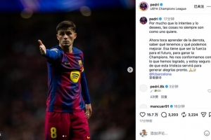 體育資訊4月15日訊 歐冠1/4決賽次回合,巴薩客場(chǎng)2比1擊敗馬競(jìng),最終以總比分2-3出局。賽后,佩德里更新社媒感嘆世事并非總能如愿。