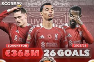 利物浦總共花費(fèi)3.65億歐引進(jìn)維爾茨、?;倏?、伊薩克,三人本賽季總共打入26球,只比迪亞斯多攻入3球。