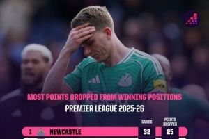 體育資訊4月15日訊 數(shù)據(jù)機構(gòu)OPTA統(tǒng)計了本賽季英超在領(lǐng)先情況下最終丟分情況,紐卡斯?fàn)?5分最多。
