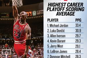 官方曬季后賽歷史場均得分:喬丹非人類 東契奇KD詹姆斯在榜!