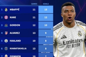 1、姆巴佩(皇馬)15球