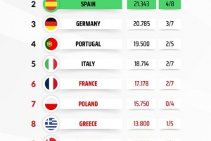體育資訊4月16日訊 本賽季歐冠8強戰(zhàn)全部結束,隨著拜仁淘汰皇馬晉級,德甲聯(lián)賽歐戰(zhàn)積分與西甲聯(lián)賽差距縮小。