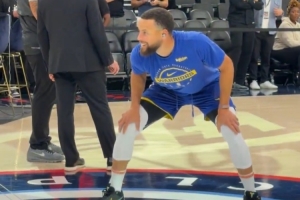 以傲人身材出圈!德?lián)渑剖植继m妮曬今日賽前與庫里合照!