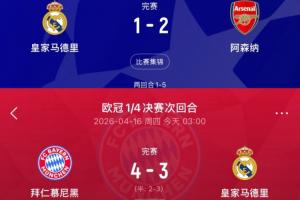 體育資訊04月16日訊 歐冠1/4決賽次回合,皇馬客場(chǎng)3-4遭拜仁逆轉(zhuǎn),兩回合4-6遭雙殺,止步8強(qiáng)。