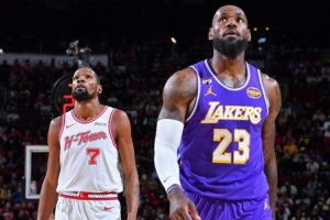 本輪火箭與湖人的系列賽,最動(dòng)人的主線莫過于詹姆斯與杜蘭特的對(duì)決。