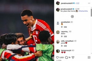 拜仁中場穆西亞拉在社交媒體曬出與隊友一起慶祝的照片,分享了晉級的喜悅,并配文寫道:“沒有比主場更好的地方了?!?/p>